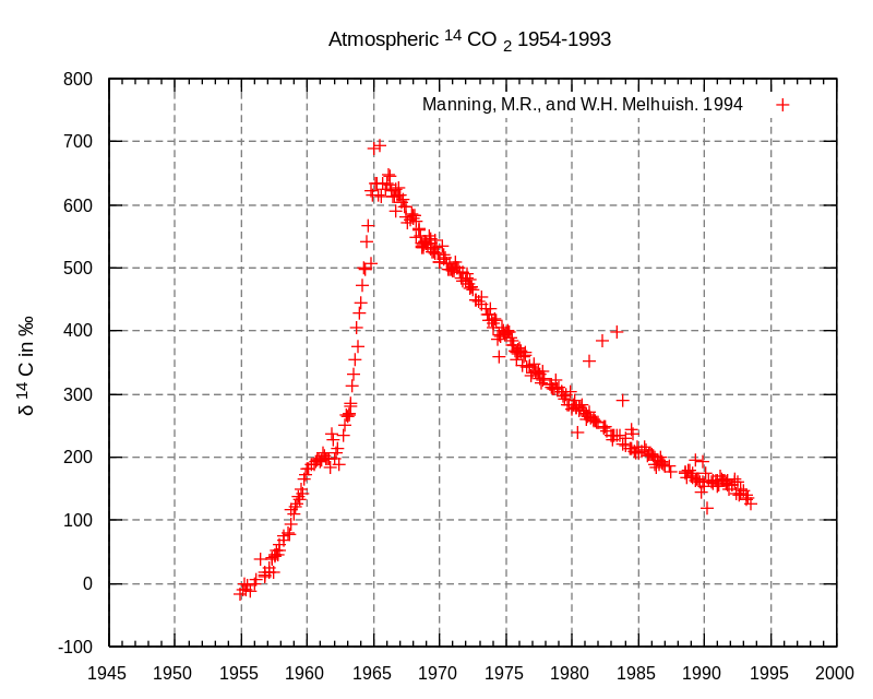 탄소연대 측정은 유기물의 탄소-14(14C)의 양을 측정하여 그 유기물의 연대를 측정하는 방법입니다.